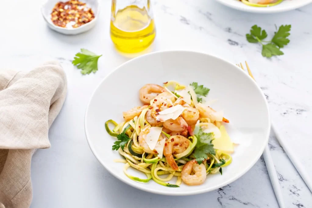 2. Zucchini Noodles with Lemon Garlic Shrimp (18 mins)