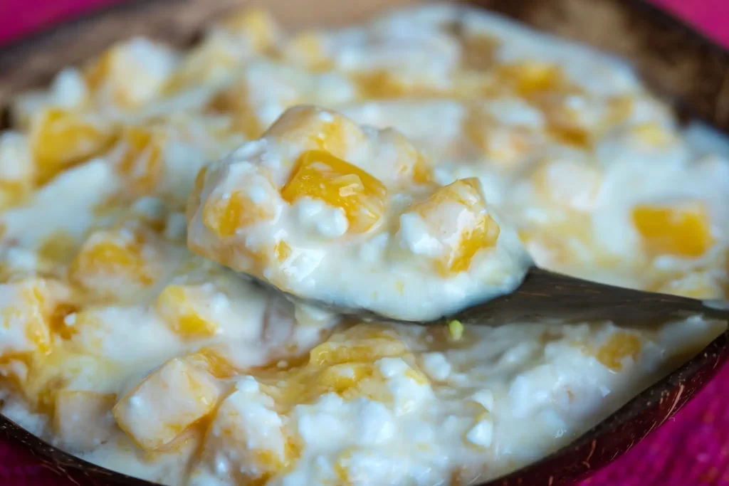 This tropical-inspired snack brings a burst of sweet and tangy flavors. The juicy pineapple and aromatic toasted coconut flakes elevate simple cottage cheese into a delightful and satisfying treat.